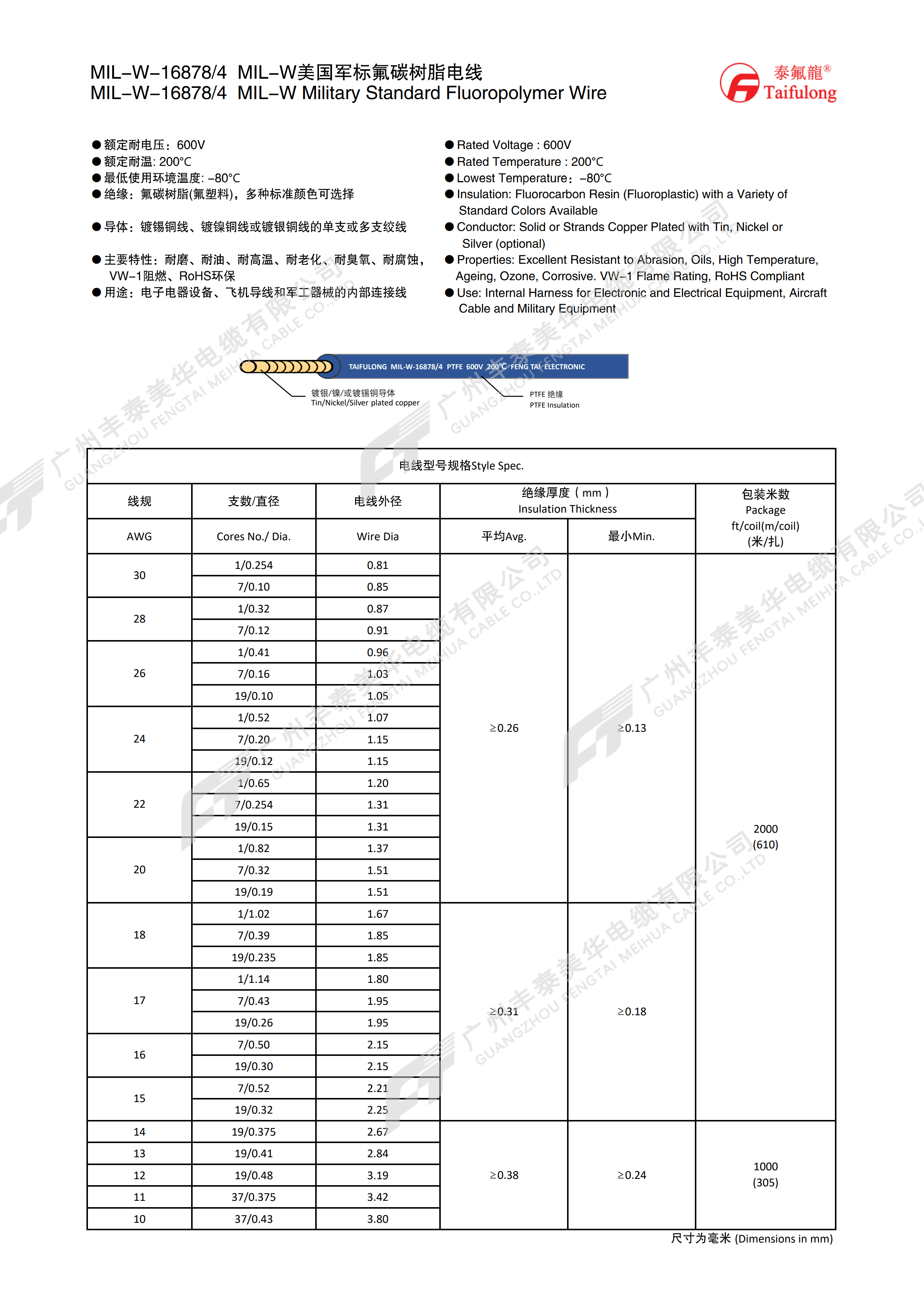 PTFE(聚四氟乙烯)-MIL-W美国军标