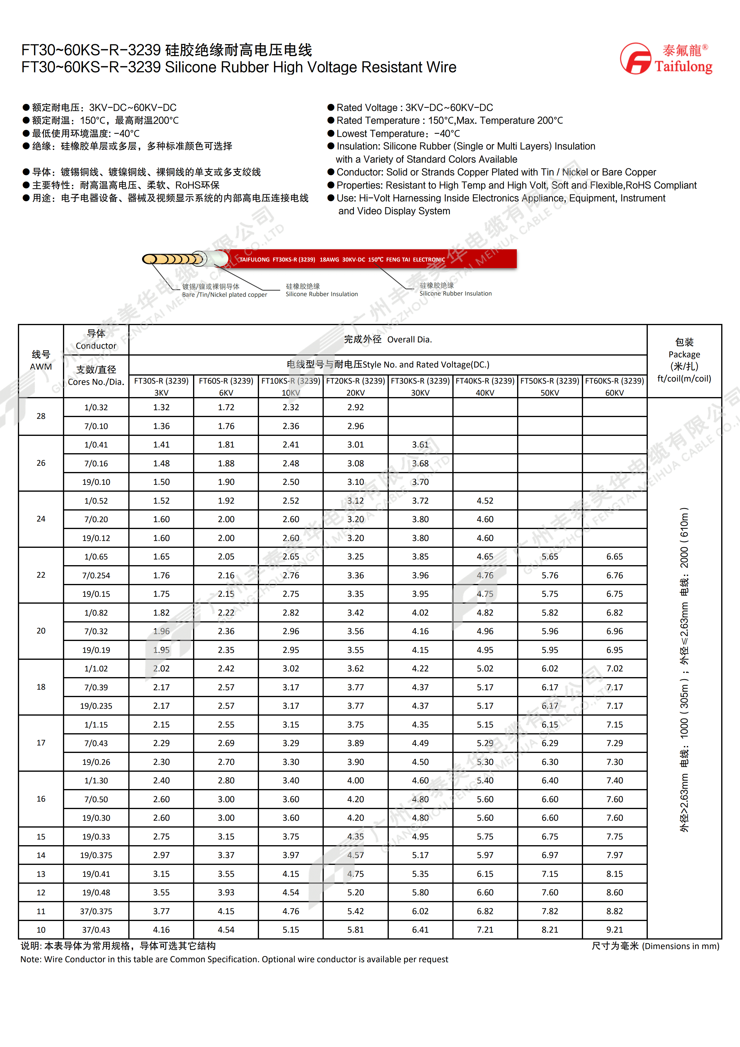 常规电线的包装一般分为305米和610米,家装电线分为100米和50米。不同线径的电线,其外径大小不一样,所以成圈的米数也会不同。但成圈米数不同的电线也只是长度上不同而已,其性能是完全相同的。除了305米和610米的成圈米数外,丰泰也可按客户需求定制成圈米数。
