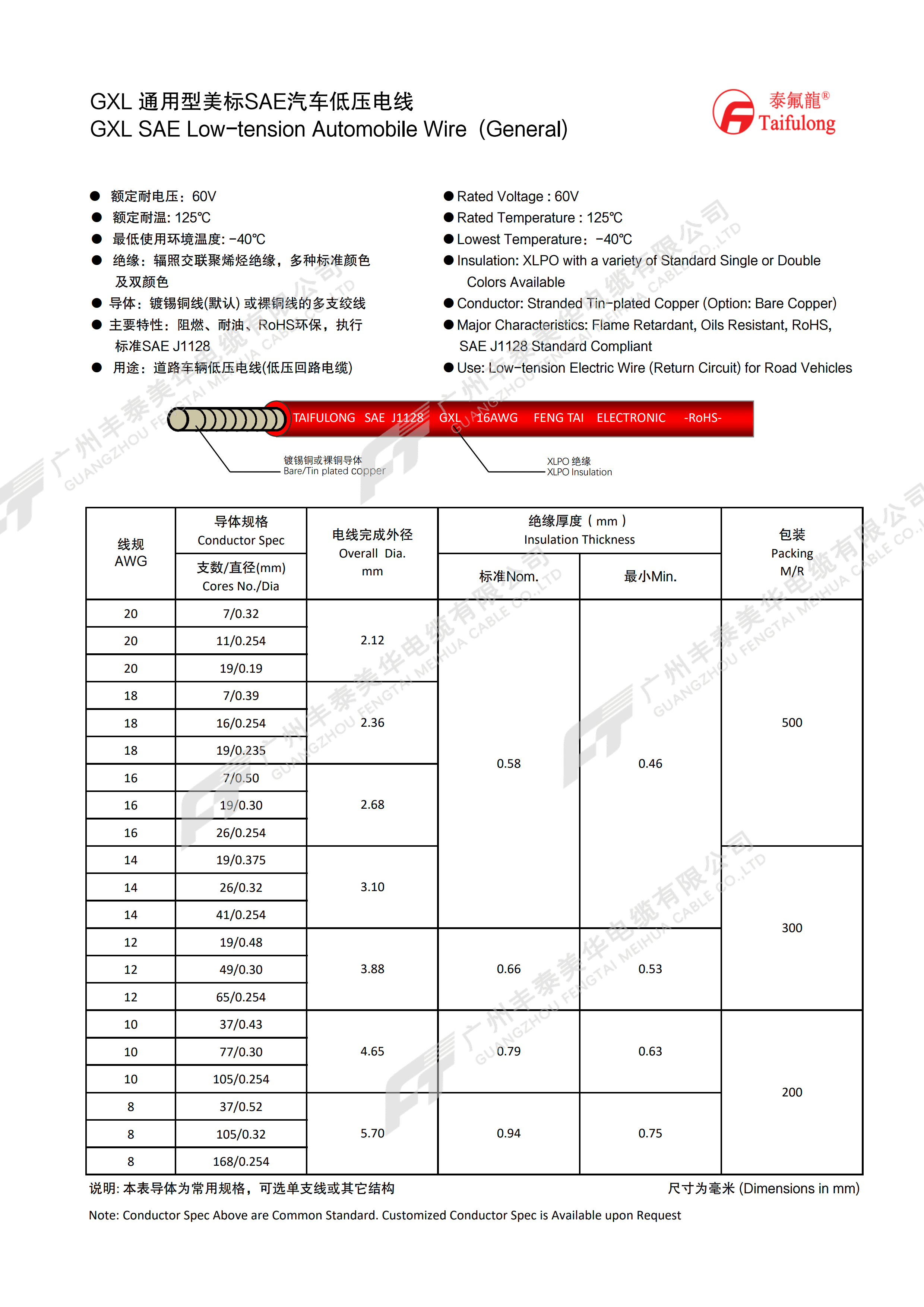 | 说明: 本表导体为常用规格,可选单支线或其它结构 | 尺寸为毫米 (mm) | ||||