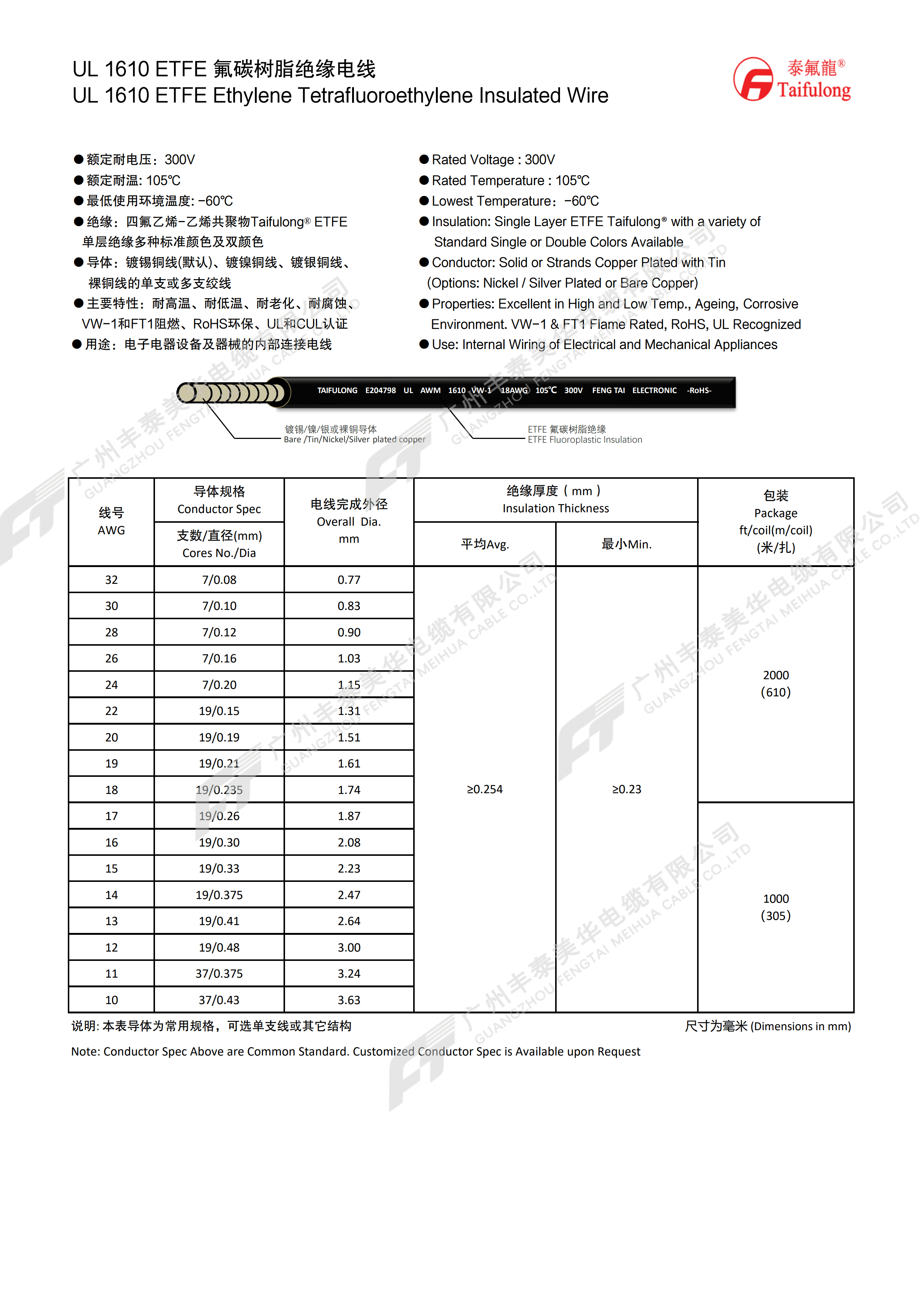 | 线号 AWG | 导体规格 | 电线完成外径 mm | 绝缘厚度(mm) | 包装 (米/扎) | |