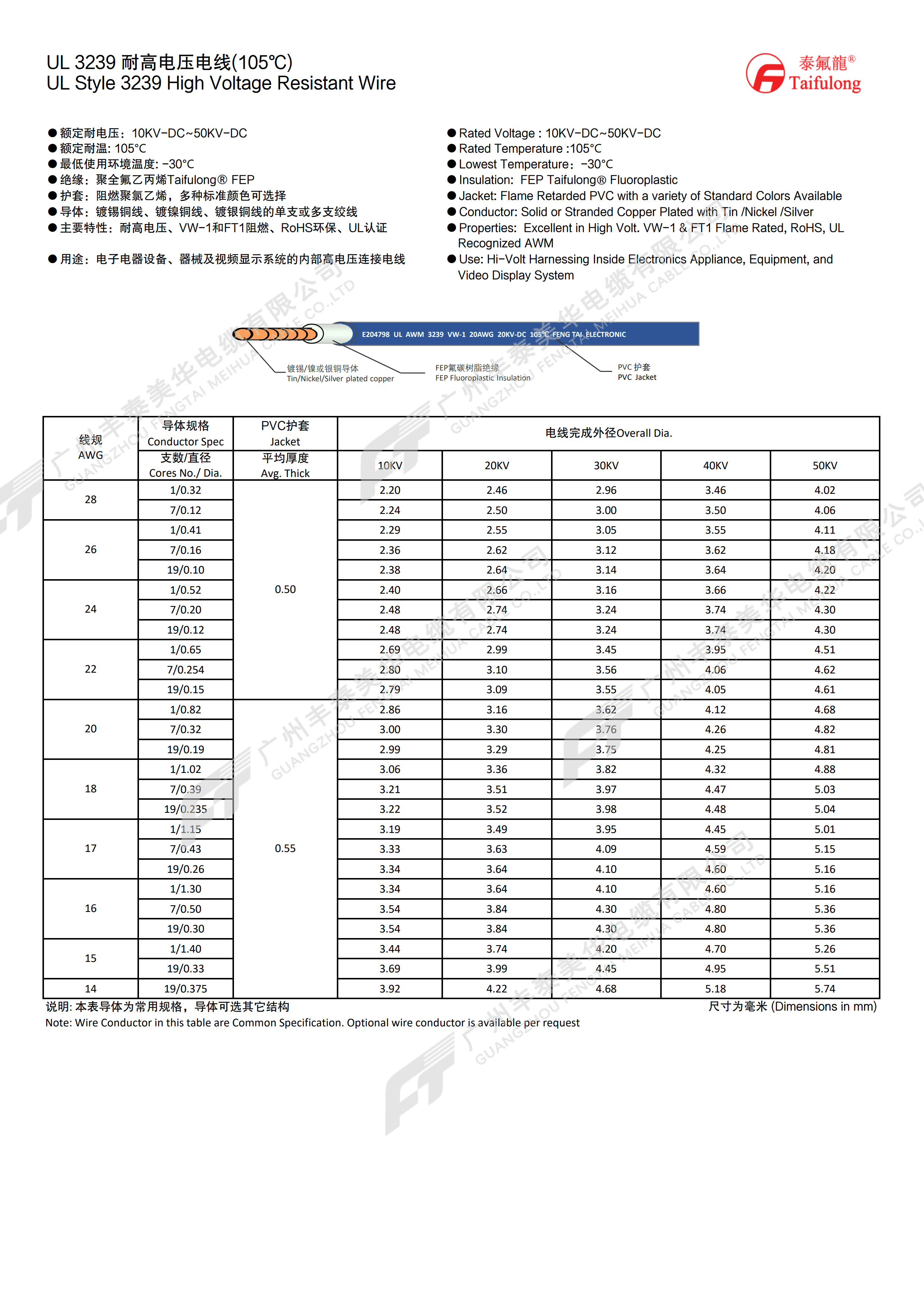 | 线规 AWG | 导体规格 | PVC护套 | 电线完成外径 | ||||