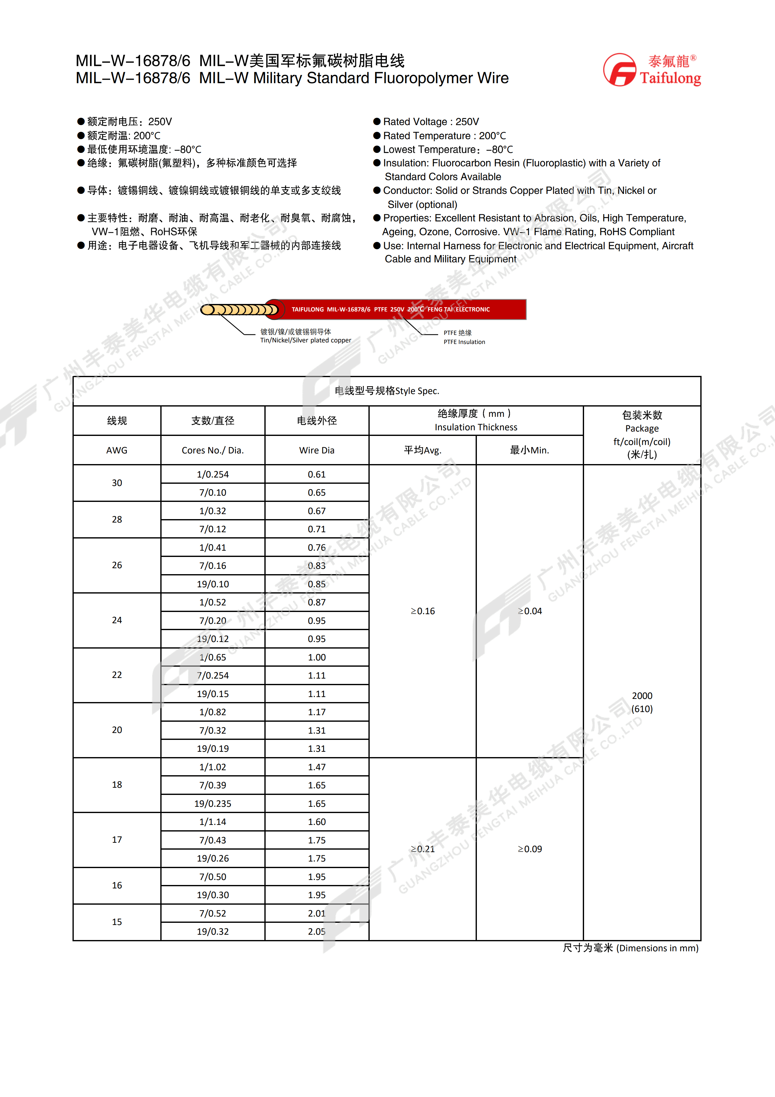 | 线规 AWG | 支数/直径 | 电线外径 | 绝缘厚度(mm) | 包装米数 (米/扎) | |