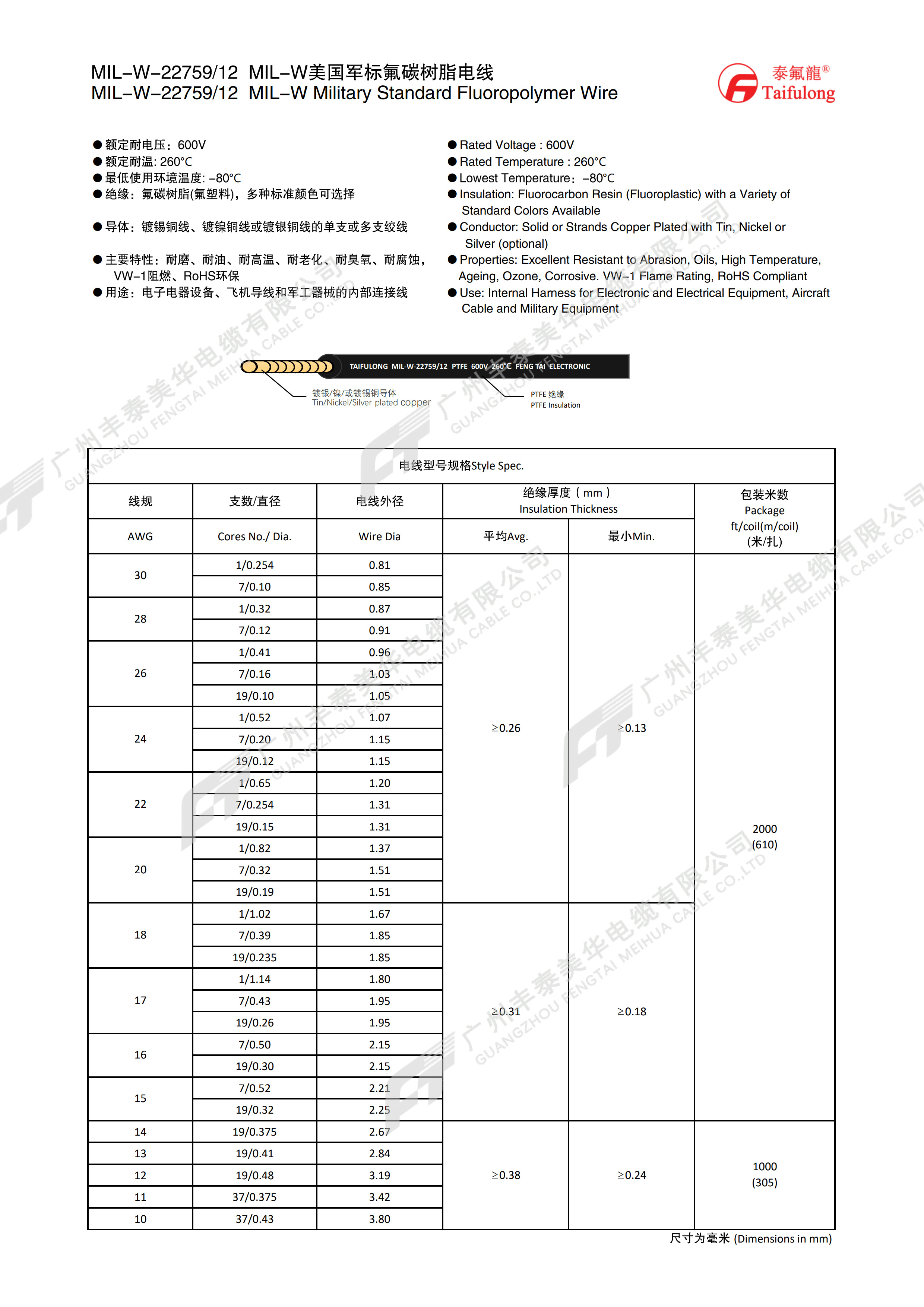 | 线规 AWG | 支数/直径 | 电线外径 | 绝缘厚度(mm) | 包装米数 (米/扎) | |